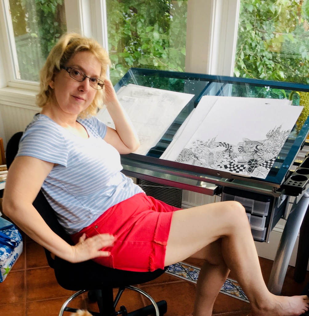 Martha Moyer (Marty) is a retired high school math teacher, artist, writer, and storyteller. She is the founder of The Graphic Memoire Collective, where she self-published The Broken Meditation Garden. She also has short works in various Boston Comic Round Table anthologies. She has won Moth story slams and was in the finals in MassMouth in 2018, and was in WGBH Stories from the Stage. She is an Army brat and was born in the Panama Canal Zone, lived in Texas, Washington State, and Eugene Oregon. She majored in theatre at the University of Oregon and spent a decade in the performance arts.
